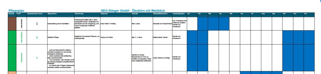 - Pflegetypen: Angabe, ob es sich um einen, eine Blumenwiese, Rasen, Staudenmischpflanzung, Wildhecke oder eine andere Form von Grünfläche handelt.